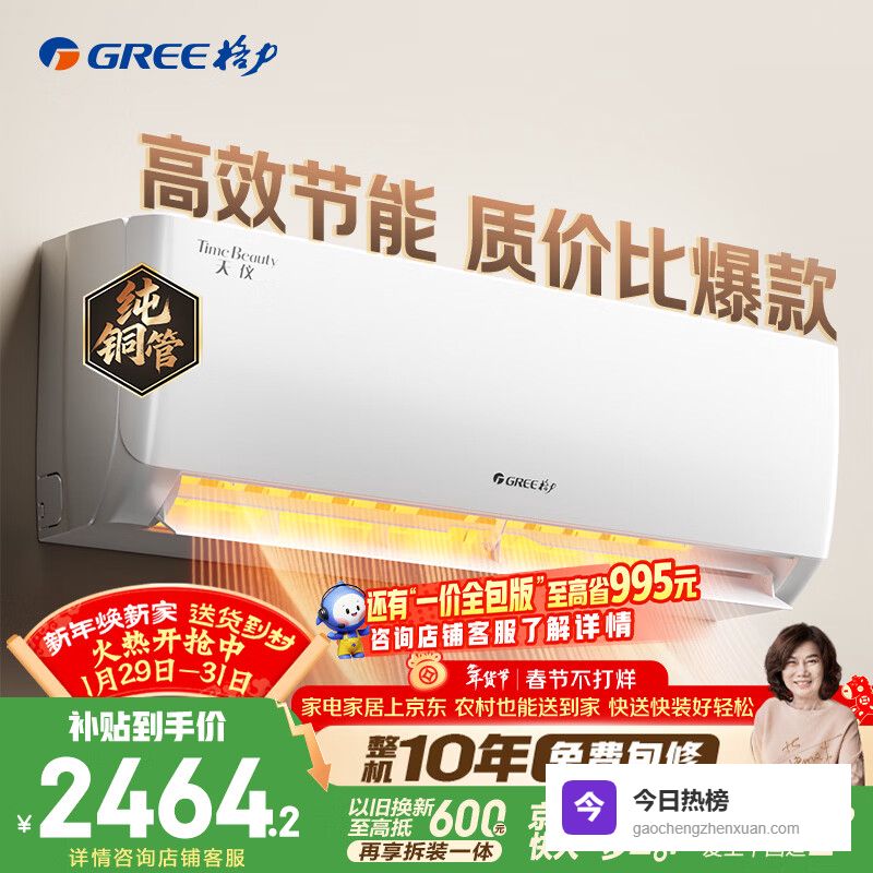 【京东自营】格力空调天仪1.5匹新一级能效变频纯铜管卧室节能省电挂机国家补贴KFR-35GW/FNh¥
