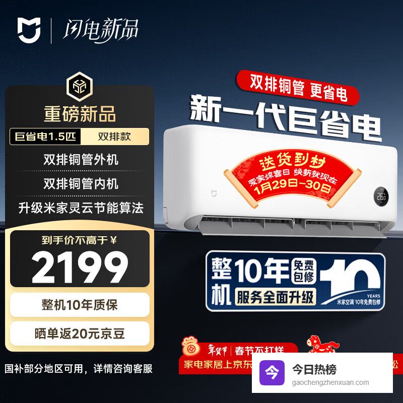 【京东自营】小米空调米家巨省电双排款1.5匹一级能效内外机双排铜管空调挂机35GW-PG15/N1A¥