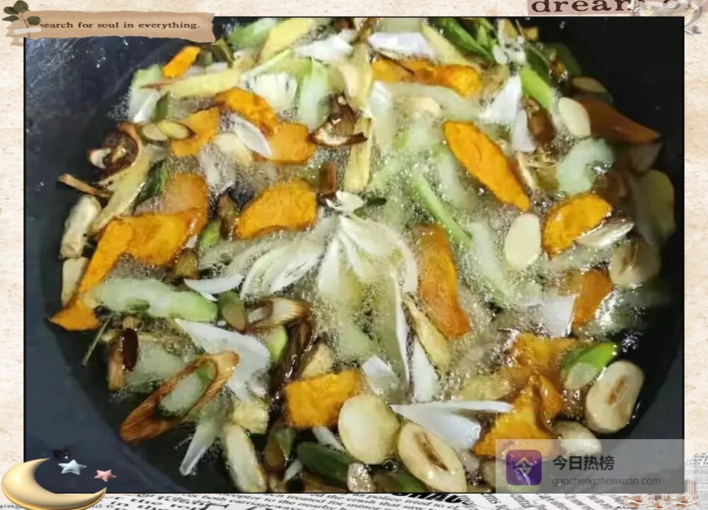 2.1 ▣ 料油:先熬香,再提味料油=普通食用油+香料+耐心。把圆葱、大葱、姜、蒜、香菜、八角、花椒、香叶炸至金黄,滤出的油自带“复合香气”;想再升级,可再加芹菜、胡萝卜同炸,味道层次瞬间加码。拌菜时最后淋上一勺,“嗞啦”一声,香味直冲鼻腔。平时炒菜也能用它代替普通食用油,最后加热直接浇顶,省事又增香。