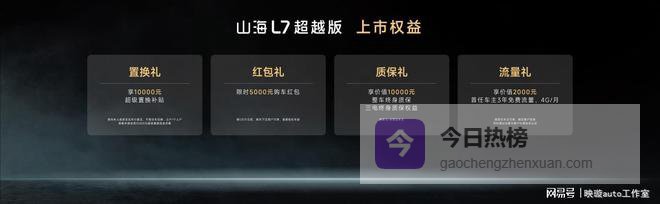 2026款捷途山海L7超越版推出3款车型,官方指导价为11.49万元-12.79万元,上市期间送上4重购车礼遇,限时抢购价9.99万元-11.29万元,助力更多家庭轻松开启向往的电混出行生活。