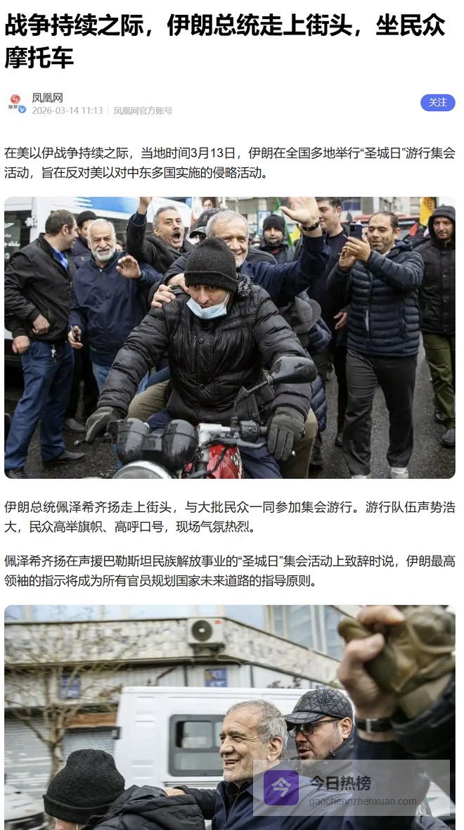 而且不是拉里贾尼一个人上街,好几个高级领导人都上街了,伊朗总统也上街游行并被报道了。