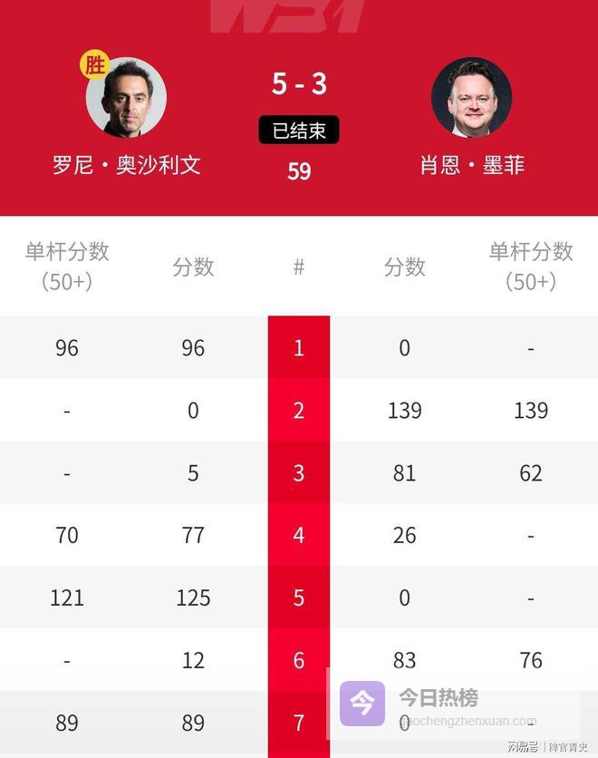 比赛首局,瑞恩·戴先是以85-20拿下,紧接着在第二局轰出单杆102分的破百,迅速取得了2-0的领先优势。齐津斯在第三局迅速调整,回敬一杆72分扳回一城。随后,这位拉脱维亚小将开始展现其冲击力,凭借更为主动的进攻和关键时刻的精准得分,又接连拿下第四局和第五局,连扳三局,反而以3-2将比分反超,局势瞬间紧张起来。