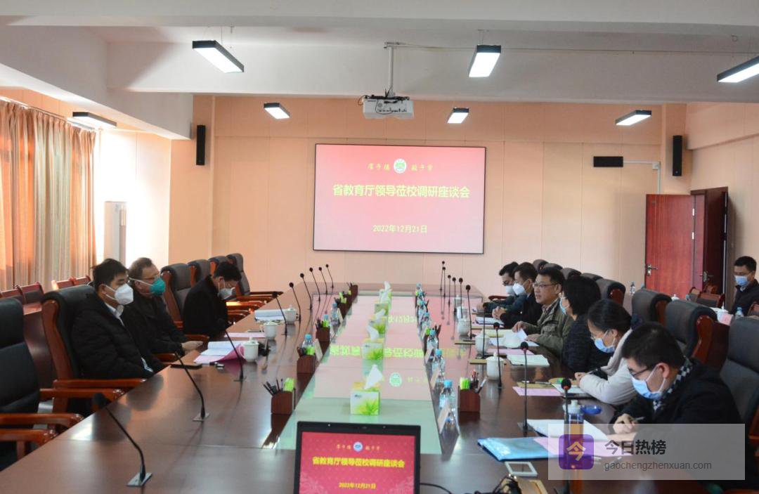 12月21日,省委教育工委委员、省教育厅党组成员、副厅长刘健率高等教育处、科学技术与信息化处处长黄文华,高等教育处副处长倪维庆等一行,专程赴校调研指导。校长邹卫东、副校长陈立红、邱龙新及相关职能部门、主干学科学院负责人参加座谈。