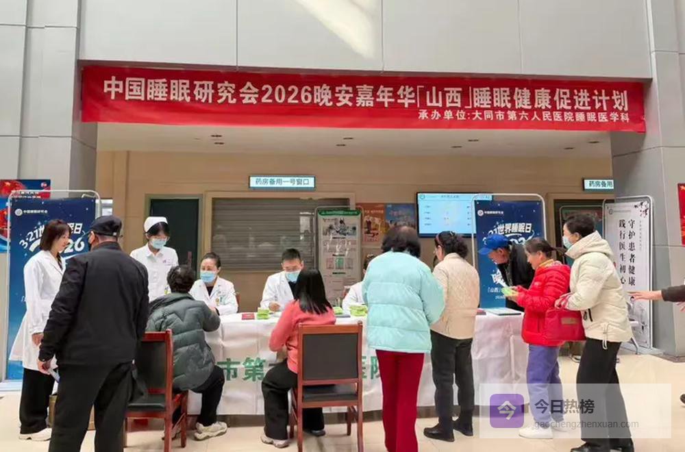 2026年3月21日是第26个世界睡眠日,今年的主题为:优质睡眠,美好生活。为进一步提升市民科学护眠意识,普及睡眠健康知识,帮助群众解决失眠、早醒、睡眠呼吸暂停等睡眠困扰,3月20日上午,由大同市精防办、大同市第六人民医院睡眠医学科、大同市医学会睡眠医学专业委员会、大同市医师协会精神病学分会、大同市医师协会心身医学专委会联合承办的2026“晚安嘉年华”「山西」睡眠健康促进计划大型宣传义诊活动,在大同市六医院门诊大厅暖心启幕。本次活动严格按照中国睡眠研究会、山西省卫健委统一部署,与全省同步开展,用专业服务与人文关怀,为市民的睡眠健康保驾护航。