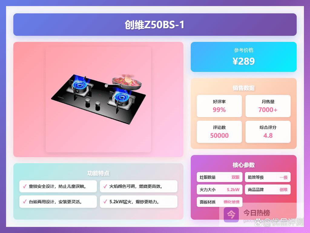 面板采用钢化玻璃材质,外观大气且清理方便。多位用户体验感还挺好,金属面板抗刮耐用,打理起来倒是比较省心。安全方面,灶具设计了多层防爆层和自动断气功能,额外保障家人安全,无论是新手还是经验丰富的厨师都能放心使用。