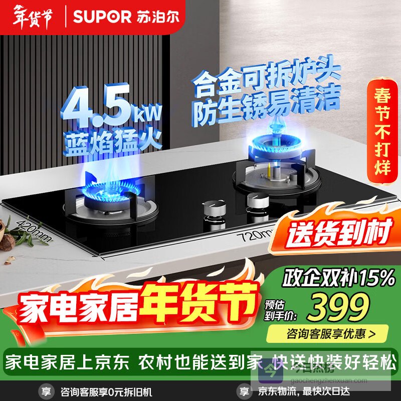 至于使用体验,无极旋钮控制调火细腻,还能根据烹饪需求调整火力大小。设计上采用一体式炉头和四重防护面板,既稳固又安全。电子脉冲点火功能也挺实用,点火速度快,无需等待,平时用起来还是挺顺手的。