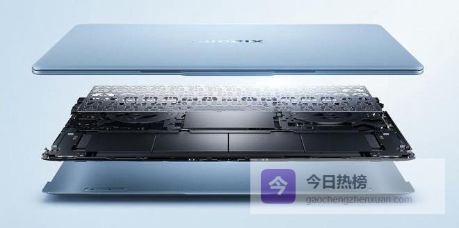 机身材质与设计,前盖采用丝绒镁合金材质,微弧曲线 大R角设计,键盘支撑板为钛合金材质,底盖为碳纤维材质,抗弯能力更强。机身有4种配色,如柔雾蓝、柔光粉、雅灰、白色。操作系统是Win 11家庭中文版,已融入超级小爱,并设有实体键。