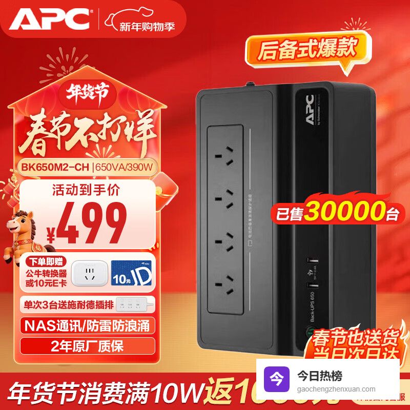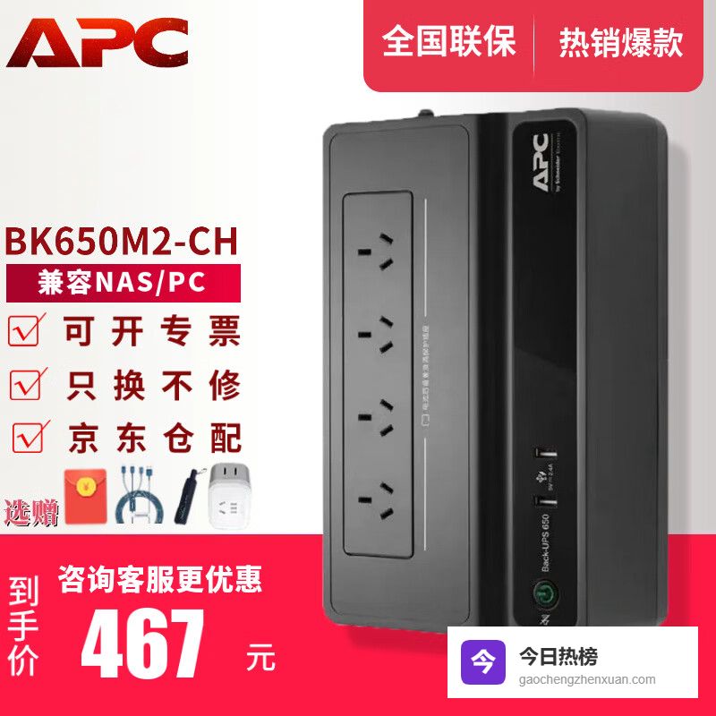 【品牌专卖】APC施耐德BK650M2-CHUPS不间断后备电源群威联通晖极空间NAS自动识别关机电¥