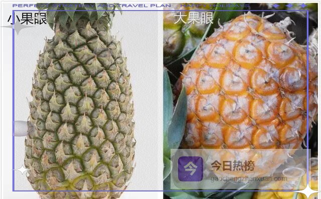 2.3 ▣ 果眼小而密——光照不足阳光是菠萝的“糖罐”。果眼大且疏松的菠萝,糖分与水分双高;果眼小而密集的,则因光照欠奉,酸涩且易过敏。记住:好看的不一定好吃,但难看的往往更甜。