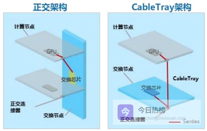 传统GPU集群依赖Cable Tray线缆架构,存在信号损耗大、算力密度低、运维难度高、组网成本高的明显短板,这也是制约多GPU协同效率的物理层关键问题。