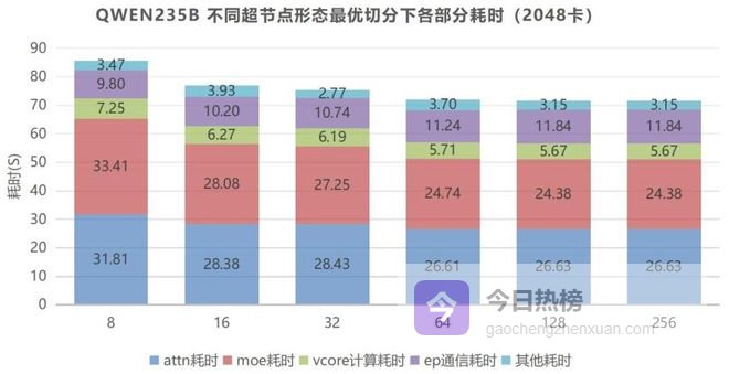 图3 Qwen3-235B不同超节点形态最优切分下各部分耗时