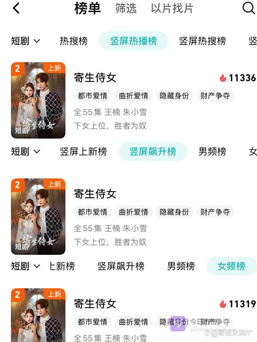 开年追剧清单里,有没有一部让你吃饭、通勤都舍不得快进的剧?2026年1月29日腾讯视频上线的短剧《寄生侍女》,显然成了不少人的答案。刚开播热度就冲破11336,直接冲上平台竖屏热播榜、竖屏飙升榜、女频榜三大榜单TOP2,这架势说是开年短剧黑马一点不夸张。