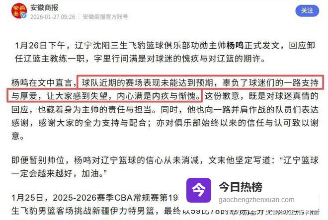 比赛结束后,杨鸣在个人社交平台发表了致歉声明。