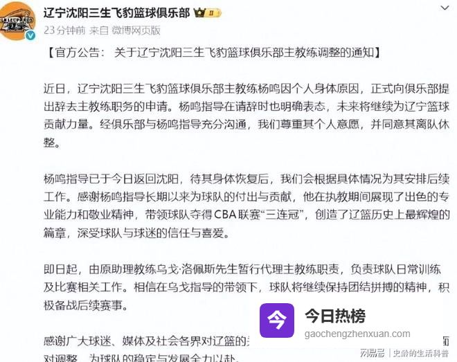 前两天辽宁篮球俱乐部发布官方公告。
