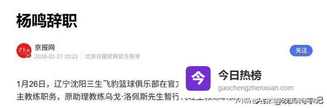 主教练杨鸣因个人身体原因辞去职务。