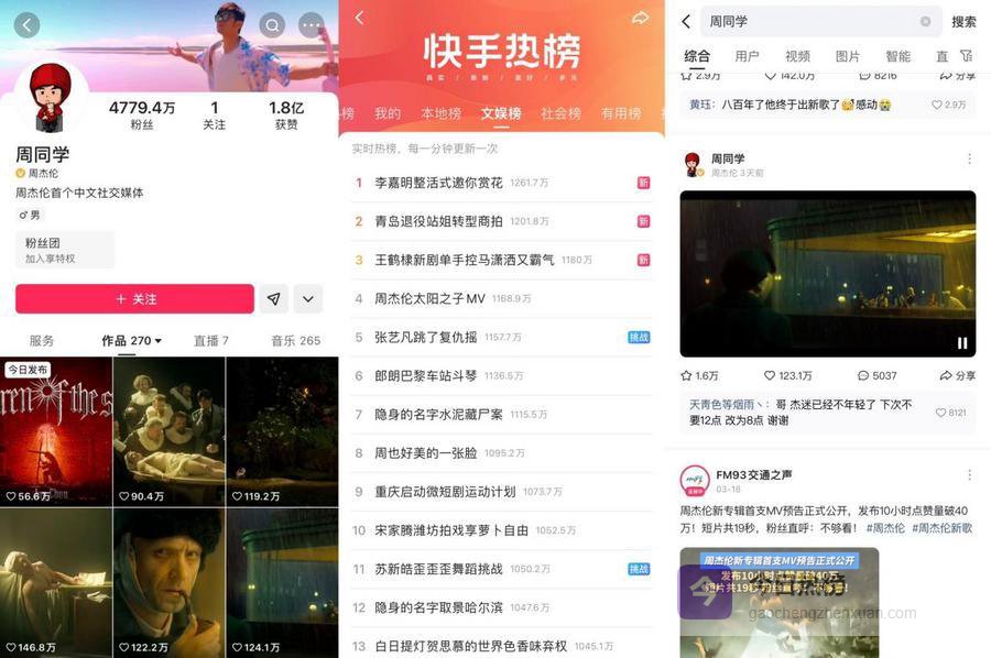 作为周杰伦首个入驻的中文社交平台,其快手账号“周同学”粉丝量早已突破4779万,快手平台也成为他与歌迷不可或缺的连接点。从魔术首秀到《最伟大的作品》首唱会,再到“哥友会”快手独家线上演唱会,周杰伦在快手上的每一次现身都能引发全网热议,观看人数与互动量也是屡创新高。不仅如此,他还通过连麦粉丝、翻牌作品、赠送签名礼物等方式在线互动,将快手变成了与粉丝日常交流、分享生活、创造独家记忆的“自留地”。