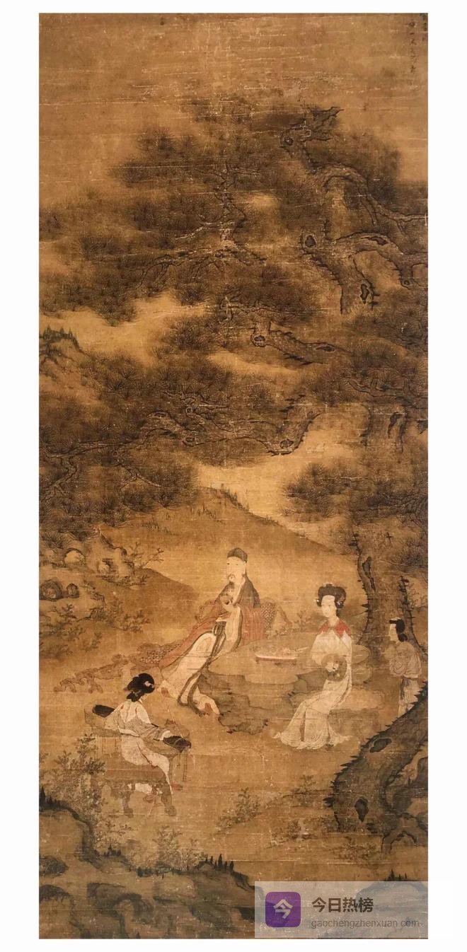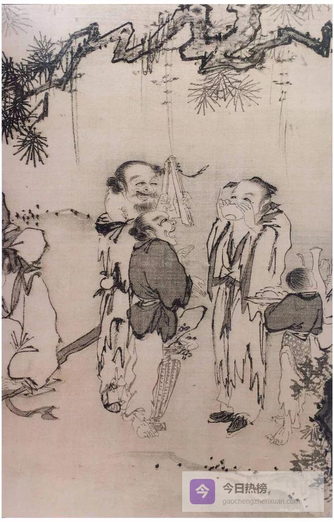 康熙年间以擅人物画而供奉内廷的禹之鼎,山水画师法蓝瑛,兼学宋、元诸家,白描写真,秀媚古雅,尤精肖像,一时名人小像多出其手。喜用兰叶描,取宋代马和之法,简逸飘洒,亦能花鸟,名重一时。《北山洗寒图》朱北山即朱自恒,该图绘北山先生裾坐于古梅树下,饮酒洗寒,神色潇洒自若,表达了画主以梅作友,借酒为饮的傲骨。画中梅枝虬劲,暗香浮动,周围衬以妇人、幼子及调酒小童,为整个画面增添了动人的神采。