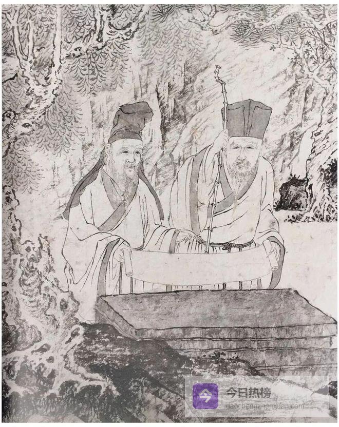 特展中另有一幅长卷是禹之鼎与蓝瑛之孙蓝深合作的《云林同调图》,当属禹、蓝精心绘制之作。此图卷是清康熙二十三年(公元一六八四年)高士奇四十岁时在北京请禹之鼎画像、蓝深布景之作。中坐为释常岫,浙江黄岩人。其左微笑侧坐相伴者即高士奇。右边松林中蓝深手执书卷款步走来。画冢以传神妙笔,描绘出各人的气质特徴,肖像画部墨骨敷色受曾鲸影响。人物的衣纹线条变化不一,或流动,或挺拔,因人而异。蓝深景布苍松泉石,与人物颇为契合,笔墨苍劲老辣,不失武林画派本色。