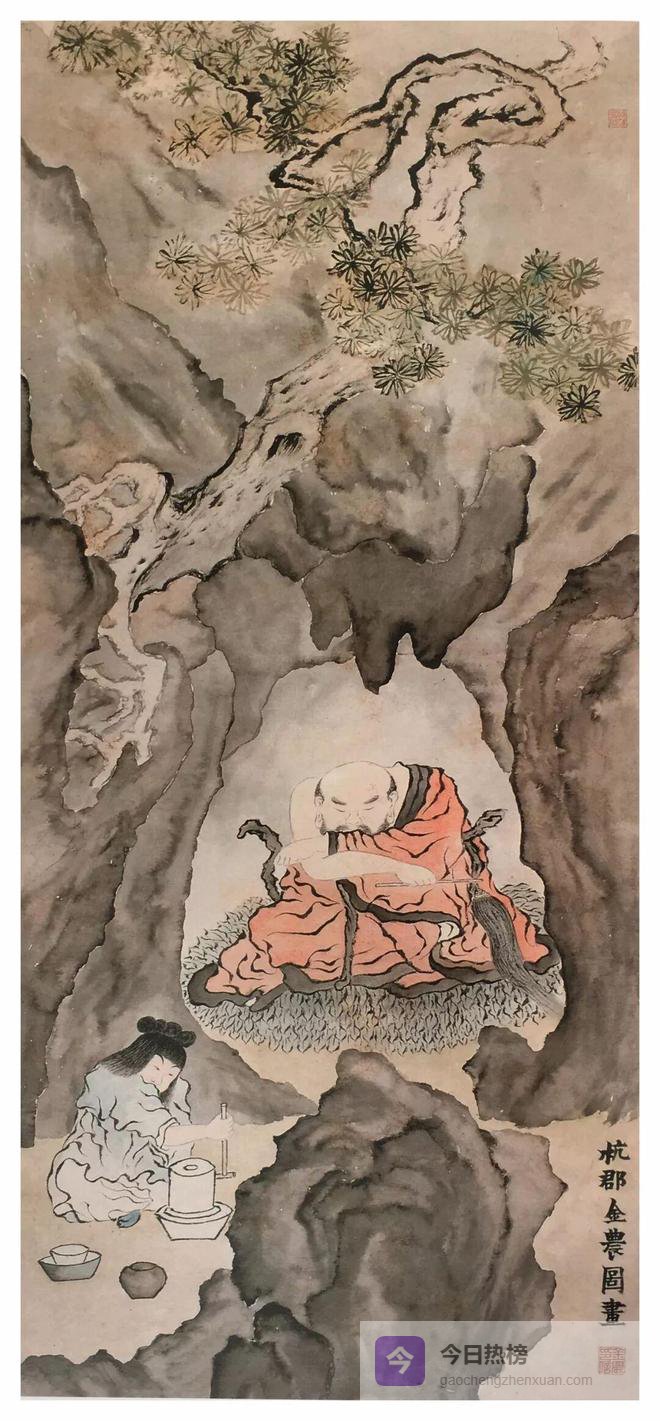 道释题材早于隋唐魏晋时期就被广泛运用于人物画中,在明、清时代的画家中,,以罗汉和观音入题者较为多见。罗汉是阿罗汉的简称,是小乘佛教中佛陀得道弟子修证最高的果位,有三层含意:可以帮人除去生活中一切烦恼;接受天地间人天供养;帮人不再受轮回之苦。