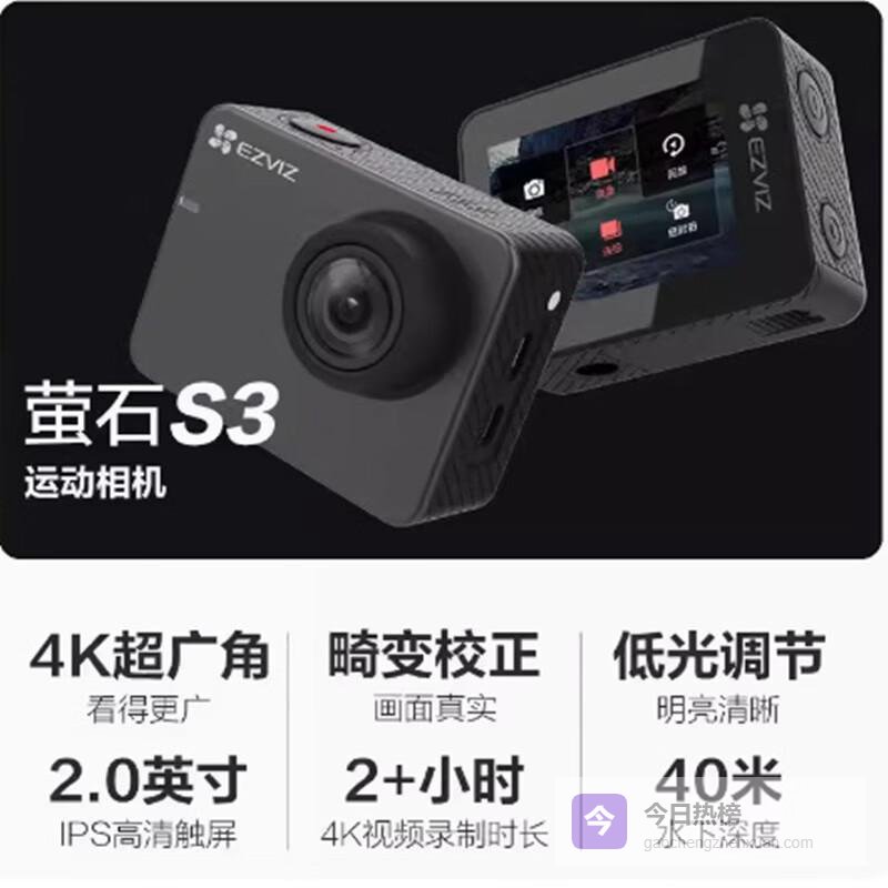 萤石运动相机哪个系列好,性价比高?N0.1:萤石S3运动相机广角防水黑色