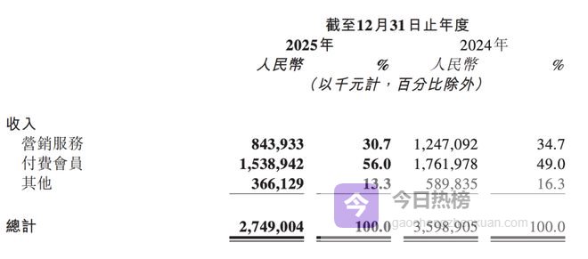 最具代表性的是职业教育和营销服务业务的收缩。2025年,营销服务收入同比下滑32.3%,职业教育在内的其他业务也在战略收缩中大幅下降近38%。