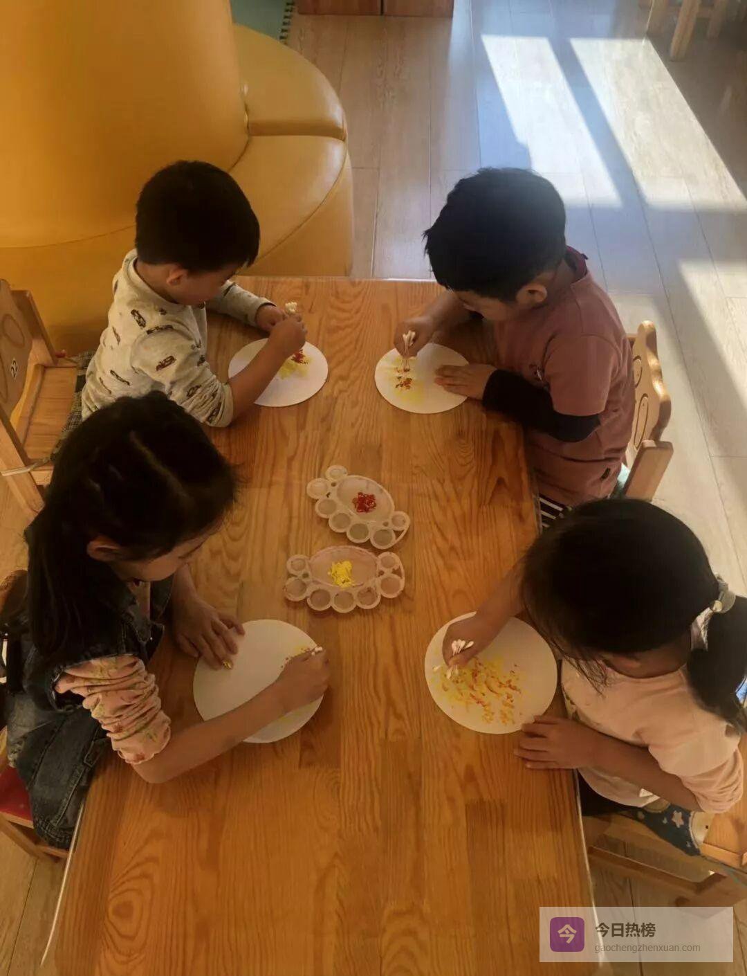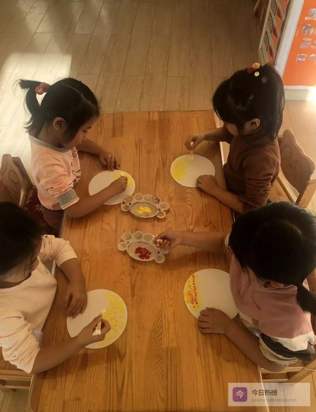 活动结束,老师把画贴在走廊:“今天我们没有教‘怎样画得好’,只提供了颜料和棉签。”