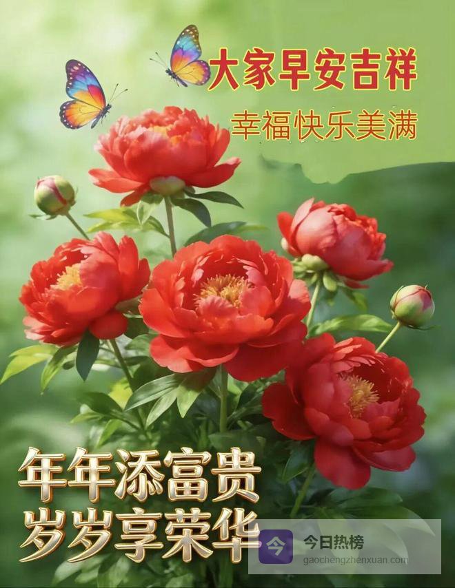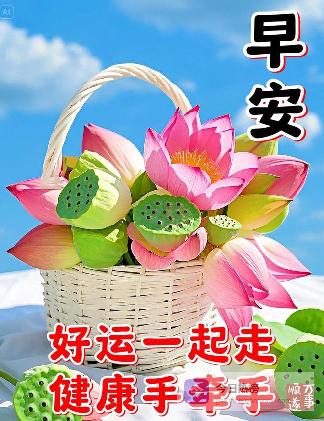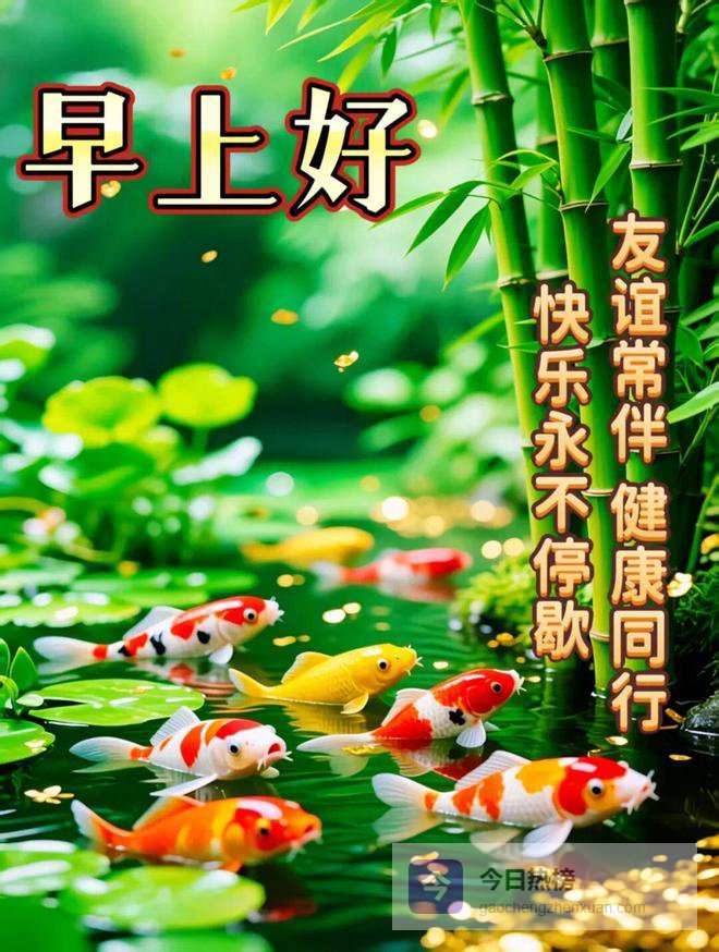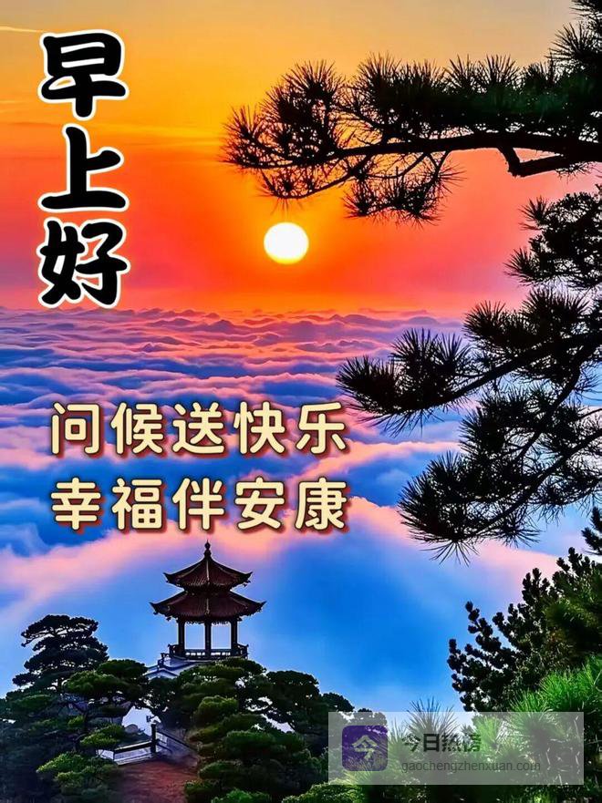早上好,黎明的微风带来了朝阳,为你今日带来新希望。吉星高照争光辉,早上好朋友,祝你的手握住每一天的运气,充实每一刻的生活,舞出自己的幸福之旅!