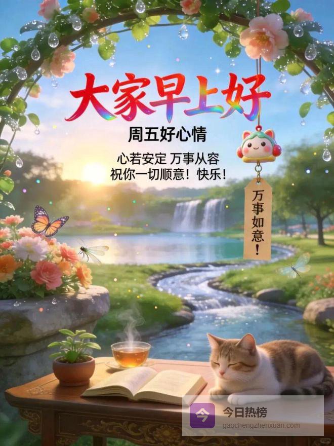 早上好!晨光漫过窗纱☀,洒在案头。新的一天,把节奏慢下来,泡一杯热茶,看叶片在水中舒展。愿生活如春日暖阳,温暖而不刺眼✨,自由且从容。周五愉快!