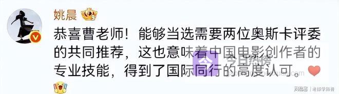 去年,曹郁当选奥斯卡评委,姚晨公开祝贺,但是称呼却从“老公”变为了“曹老师”。