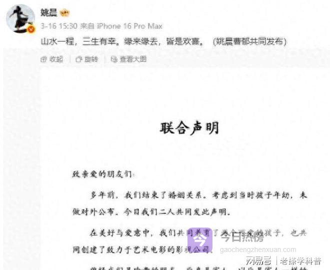 姚晨和曹郁两人,用体面与理性让大家看清,成年人最好的告别从来不是反目,而是放下与共存!