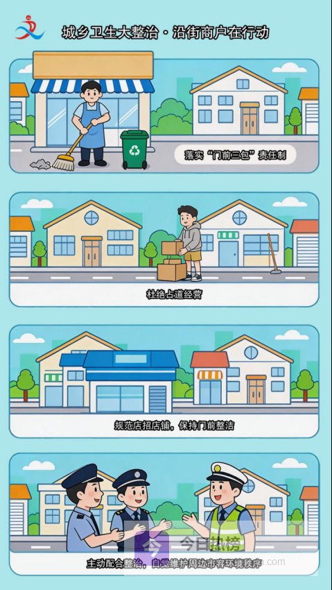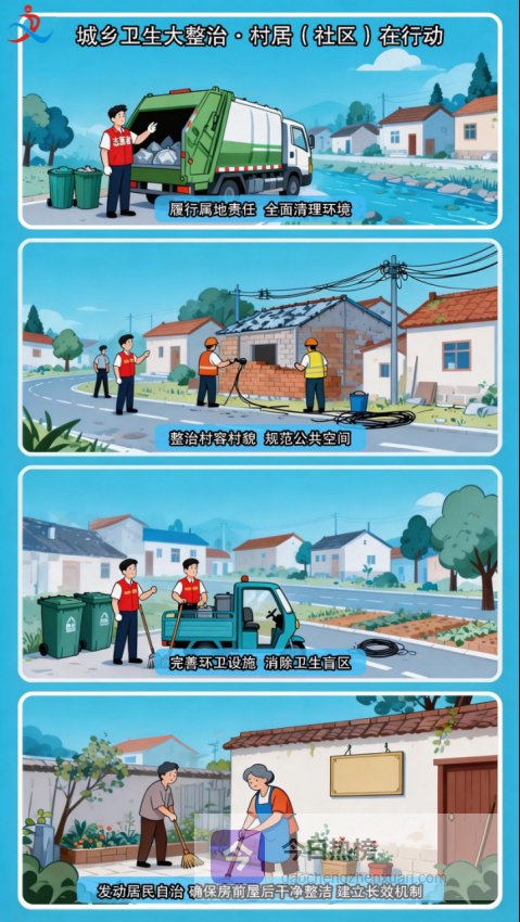 4. 积极配合整治:主动清理自家房前屋后杂物,配合社区、村(居)开展的清扫行动,支持环卫设施升级和市容秩序整治工作。