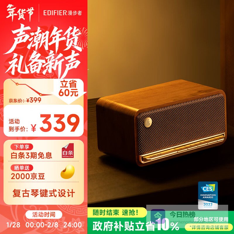 【京东自营】漫步者M230高保真复古蓝牙便携音箱桌面木质音响立体声环绕超长续航木纹色新年礼物¥