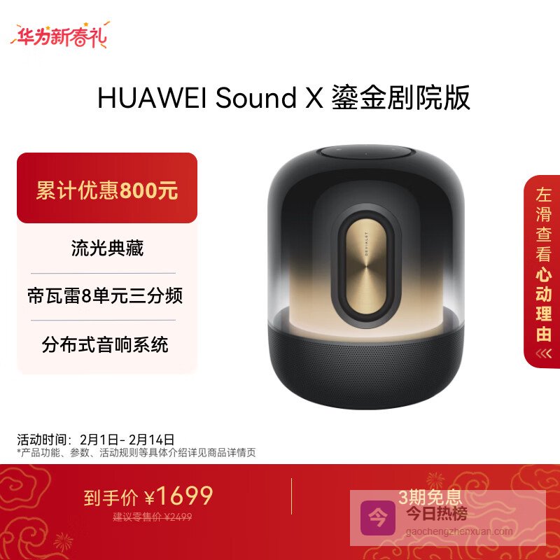 【品牌直营】华为SoundX鎏金剧院版蓝牙音箱电脑音响帝瓦雷8单元三分频典藏重低音炮鎏光金¥