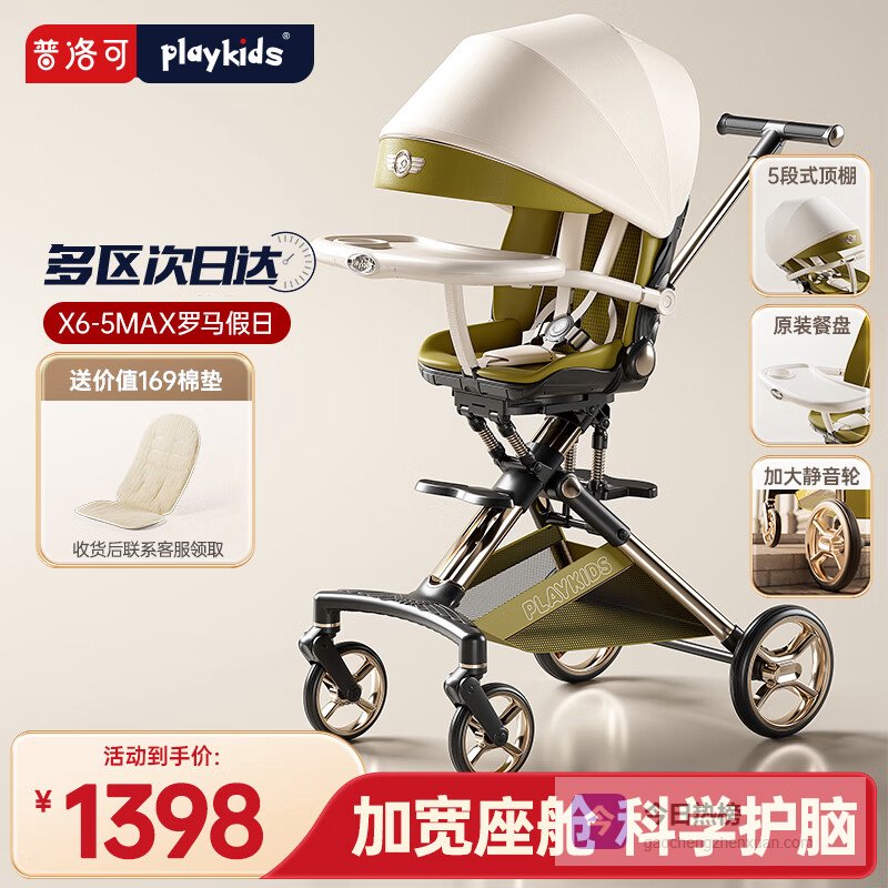playkids普洛可X6-5MAX罗马假日遛娃神器高景观婴儿推车可坐可躺双向推车¥
