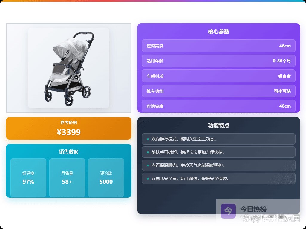 不得不说,这款推车的细节设计确实挺人性化的。比如,前扶手可以单边拆卸,抱宝宝更方便。推把高度也能调节,方便不同身高的家长使用。还有超大的置物篮,解放妈妈们的双手。车身材料经过多重检测,用起来感觉更放心。