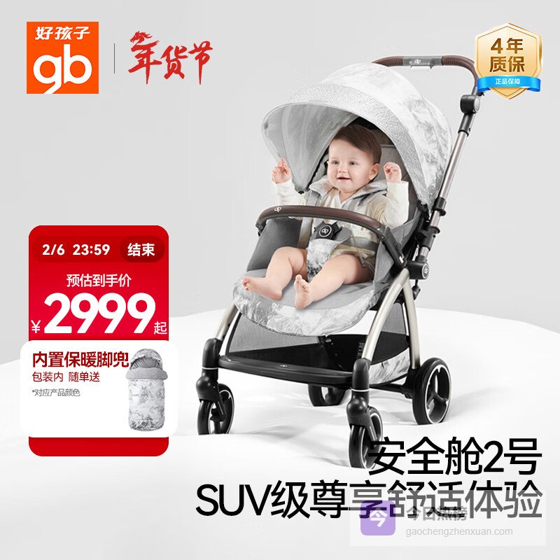 好孩子(gb)安全舱2号 婴儿推车可坐可躺双向轻便高景观遛娃车E5011白金¥
