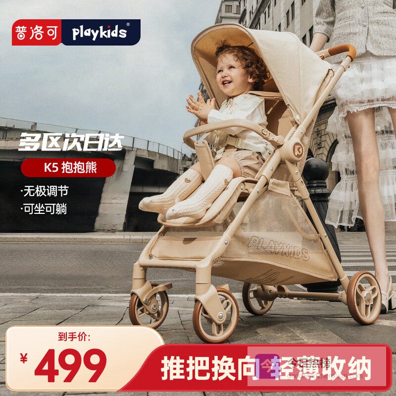 playkids普洛可K5婴儿推车新生轻便双向可坐可躺四轮推车婴儿车 抱抱熊¥