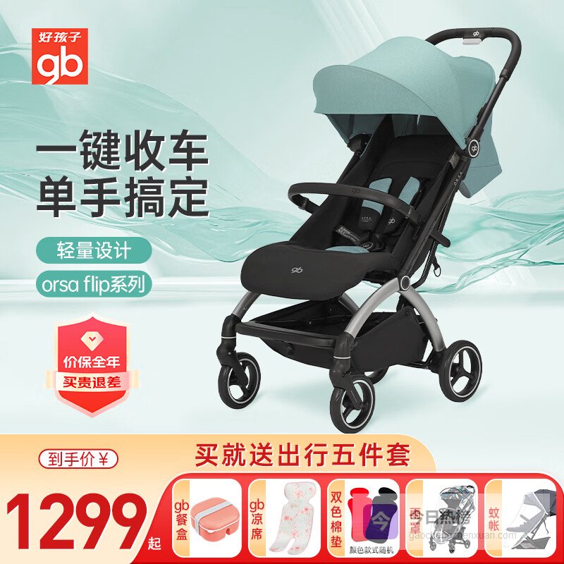 好孩子(gb)婴儿推车可坐可躺遛娃神器轻便折叠新生儿宝宝手推车ORSA D850 【C4017-不带天窗】青海蓝+5件套¥
