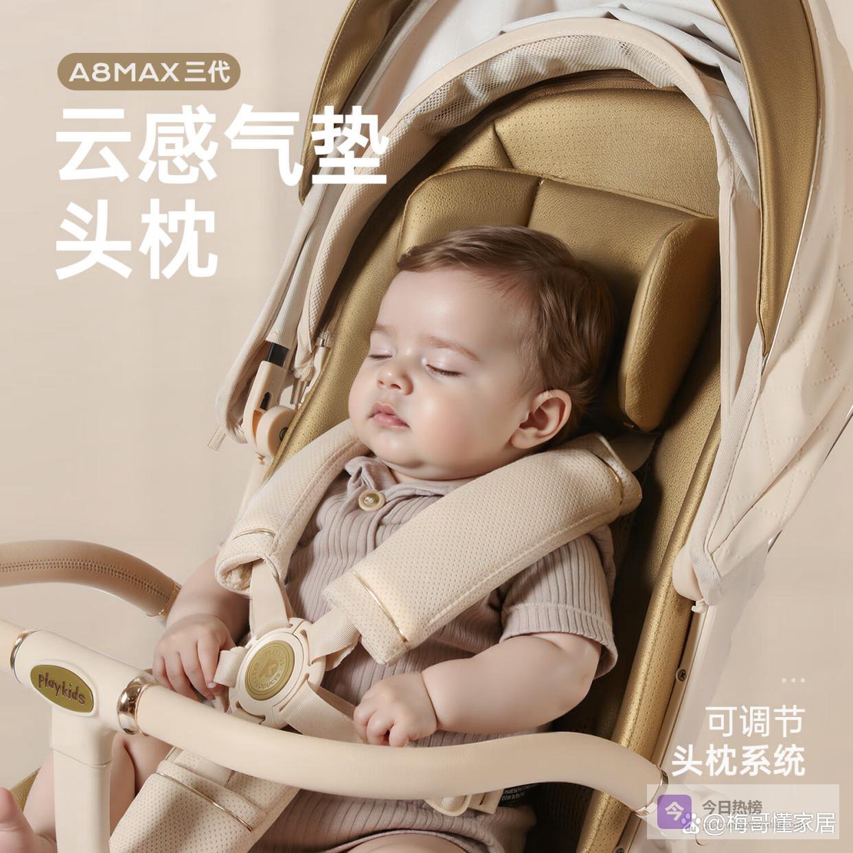 4、playkids A8MAX这款婴儿推车,在舒适性上真是下了功夫!它不仅能坐能躺,座椅角度随便调,满足宝宝各种姿势。尤其要夸的是它的动态护脊和天使之翼设计,能给宝宝脊椎提供舒适支撑,还有环抱式的包裹感,再加上透气云舱设计。另外2重座椅悬挂和4重轮子悬挂系统减震给力,宝宝坐着应该挺舒服的。