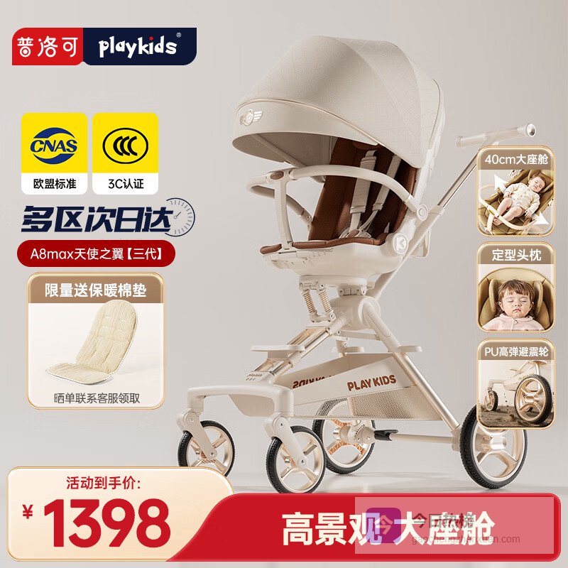 playkids普洛可A8MAX三代遛娃神器推车婴儿车折叠可坐可躺带减震天使之翼¥