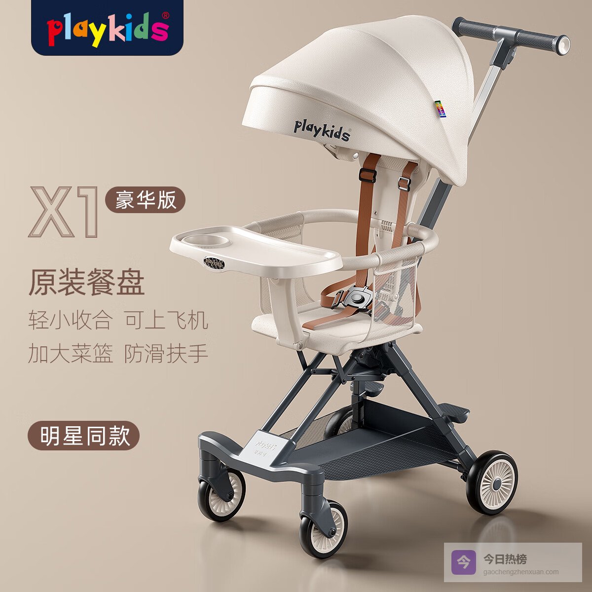 2、playkids X1豪华款这款婴儿推车主打轻便实用,整车重量控制在4.3kg/5.6kg左右,折叠起来也很小巧,大概就42*22*60cm/50*27*63cm的样子,放在后备箱或者家里角落都不占地方。而且它支持双向推行,靠背也能一键换向,带娃出门想怎么推就怎么推,随时能看到宝宝,放心!