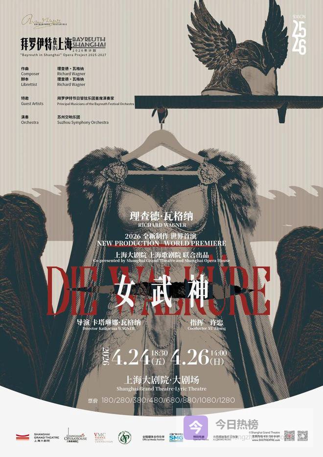4月24日、26日,作为“拜罗伊特在上海”三年驻地计划的第二部重磅作品,由瓦格纳曾孙女、拜罗伊特音乐节艺术总监卡塔琳娜·瓦格纳执导,上海歌剧院艺术总监许忠监制并执棒的全新制作《女武神》,将在上海大剧院完成世界首演。这一版先锋重构的瓦格纳巅峰之作,不仅先于拜罗伊特本土三个月与观众见面,更成为上海彰显国际文化影响力与艺术创作实力的重要标志。
