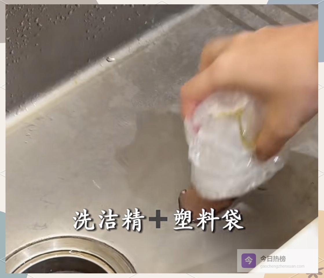 不锈钢水槽沟缝总发黄?把洗洁精挤在海绵上,再套一层塑料袋,直接当“一次性抹布”擦,缝隙里的陈年水渍被带走,亮到能照镜子。
