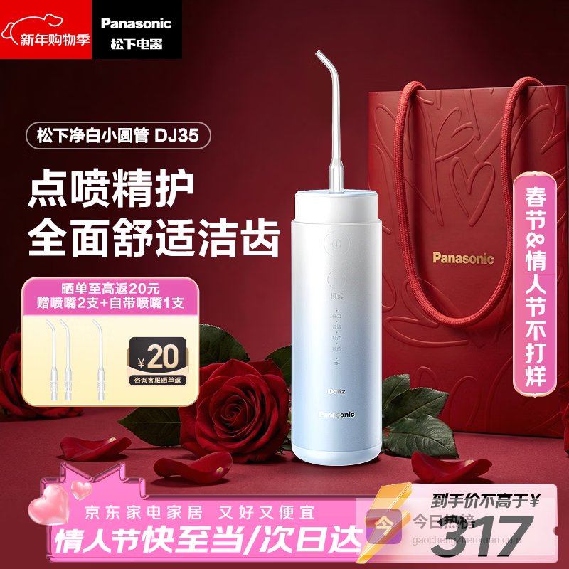 松下(Panasonic)净白小圆管便携冲牙器洁牙器洗牙器成人儿童牙齿美白去渍结石生日情人节礼物新年会礼品美牙仪DJ35¥