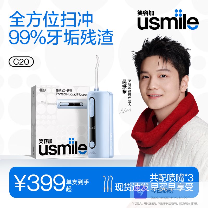 第1款:usmile C20亮点:双水流冲洗、超声气泡除菌、41档无极调压
