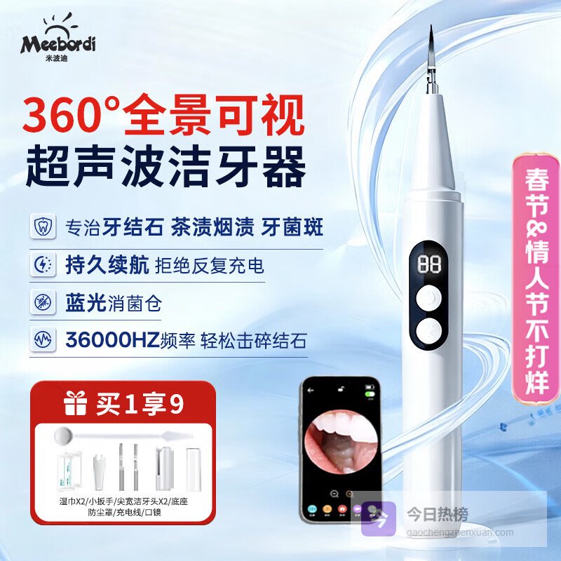 米波迪(Meebordi)可视超声波洁牙器洗牙器牙结石清理神器去黄清洁烟渍茶渍菌斑牙齿打磨工具医用新年礼物¥