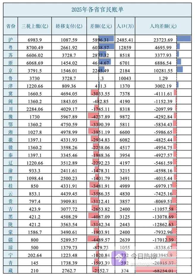 第三是浙江,常住人口数量6701万人 ,包括老人小孩,人均净上缴 6886.54元。