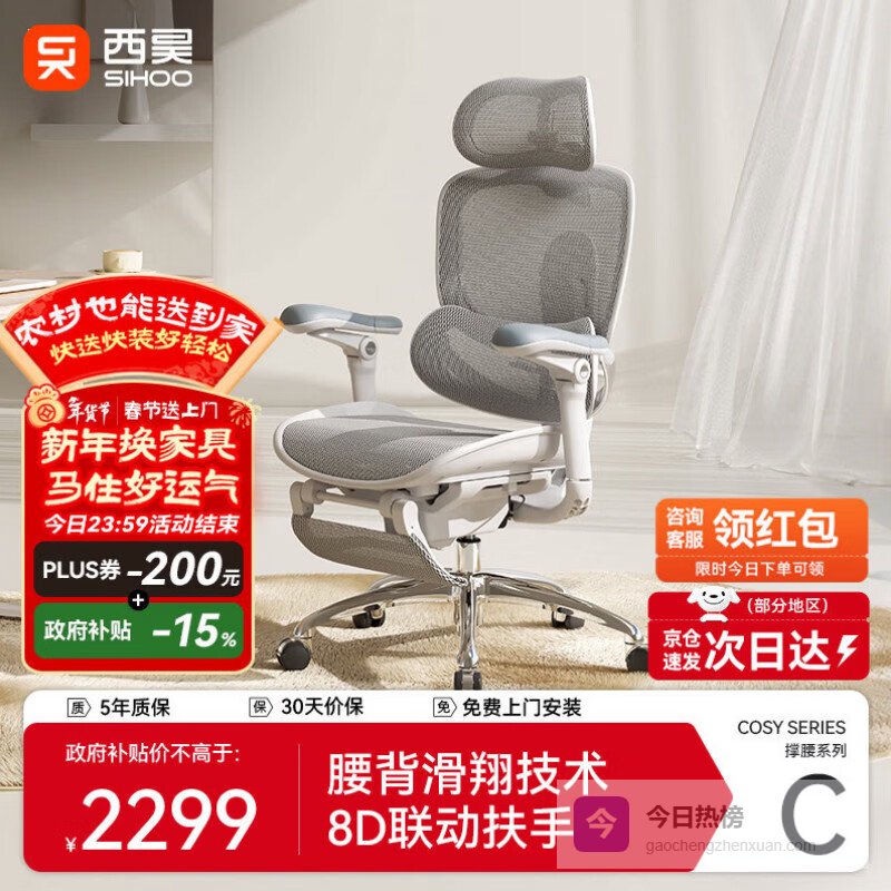 5. 西昊C300二代Pro人体工学椅:8D联动扶手+多米诺式腰压缓解西昊C300二代Pro主打“智能响应式支撑”,8D联动扶手不只是能动,而是和靠背、腰托形成协同——你一后仰,扶手自动上抬,手臂始终处于自然下垂位。腰托更绝,采用多米诺式压力传导结构,把集中腰压分散成均匀支撑。