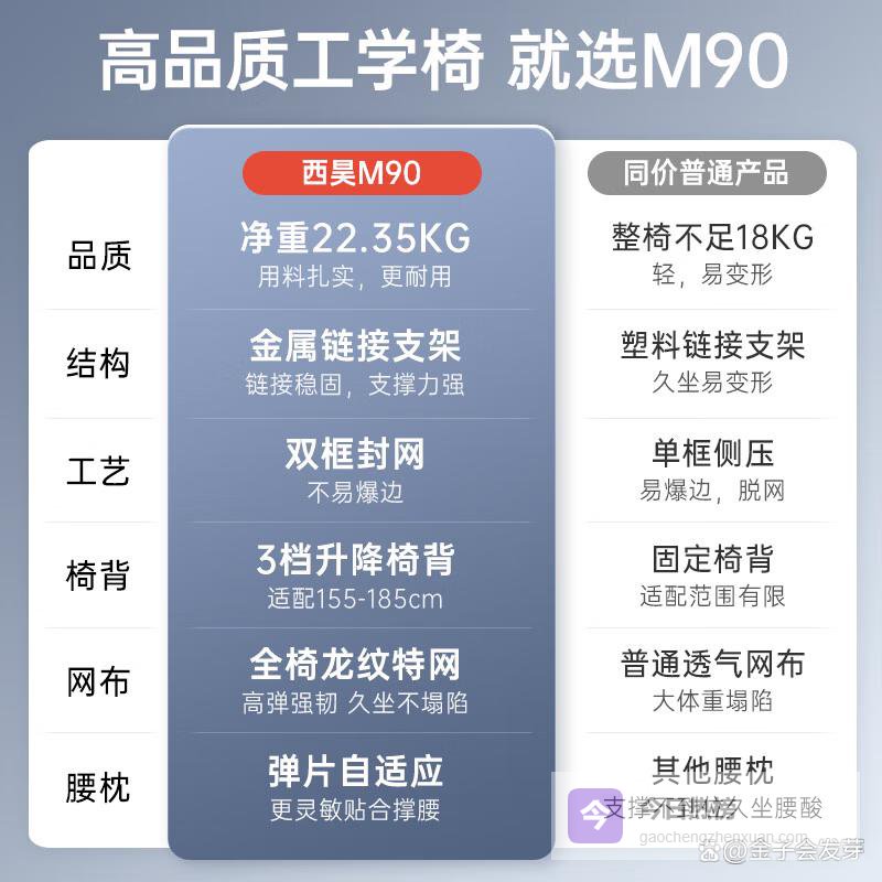 4. 西昊M90人体工学椅:22.35kg精工骨架+全网龙纹高弹支撑西昊M90是一台“重器”,净重22.35kg却毫不笨重,金属连接件全部加厚加固,连气杆都是Class 4级,承重稳稳扛住130kg。全椅采用龙纹高弹网布,密度高、延展强,久坐数小时依然紧绷有型,不松垮不塌腰。
