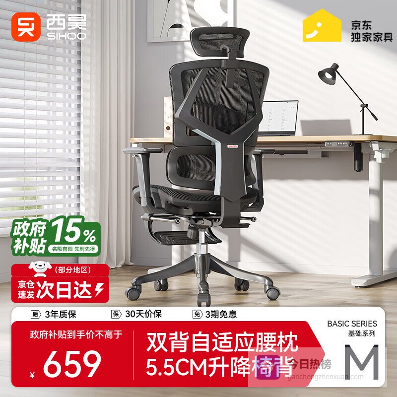 3. 西昊M56二代人体工学椅:宽大头枕+双腰托灵活适配西昊M56二代把“细节控”三个字刻进了产品基因里,37cm超宽头枕能完全承托后脑与颈部,侧睡小憩时也不怕歪头落枕。腰托是少见的W型仿生结构,配合浮动大腰枕27cm/46cm双档可调 ,把整个腰腹区域都照顾到了。